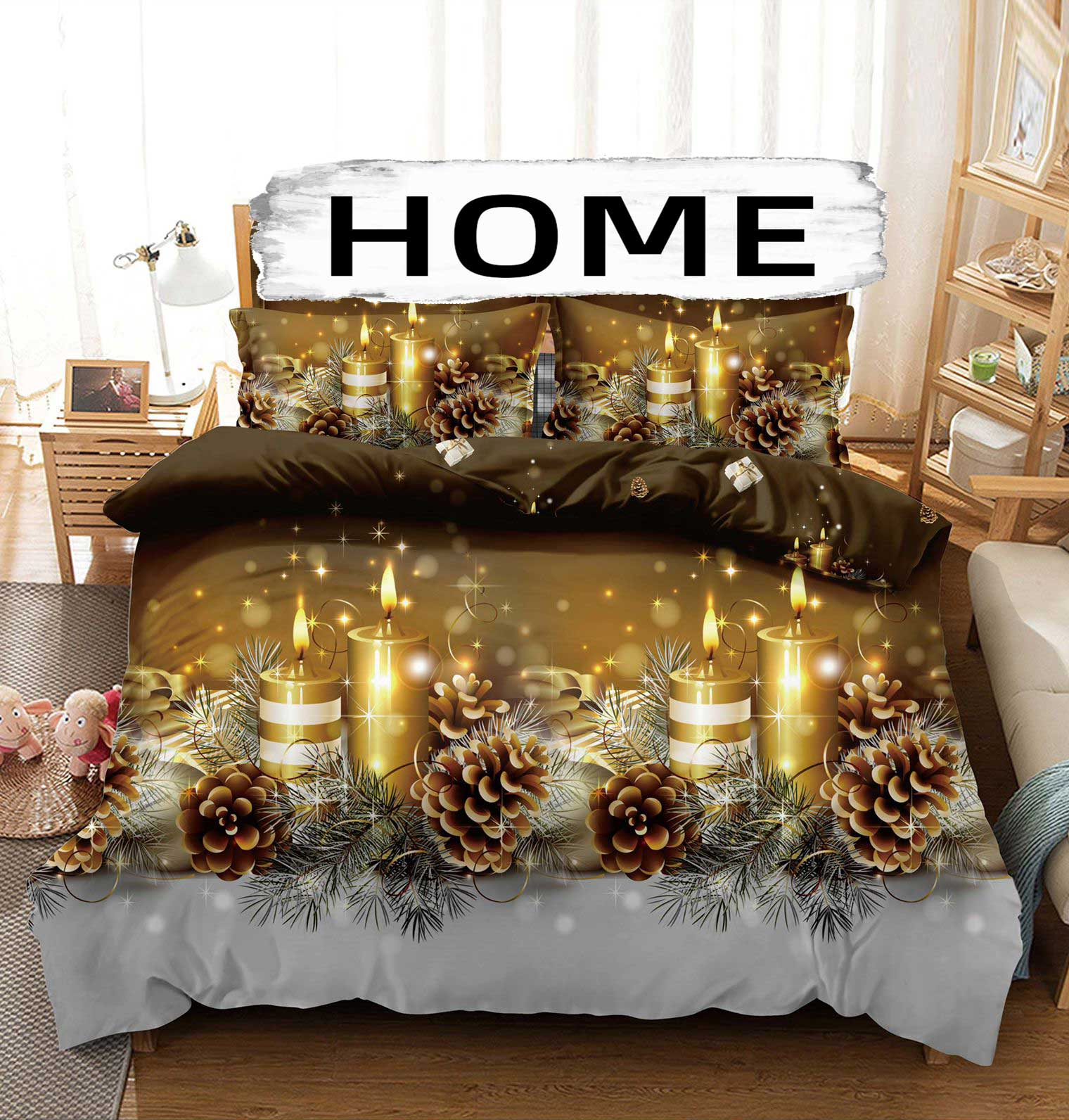 Lenjerie de Craciun (FC 12), Pat 1 Persoana, Bumbac Finet, 4 piese, Lumanari Craciun, Auriu